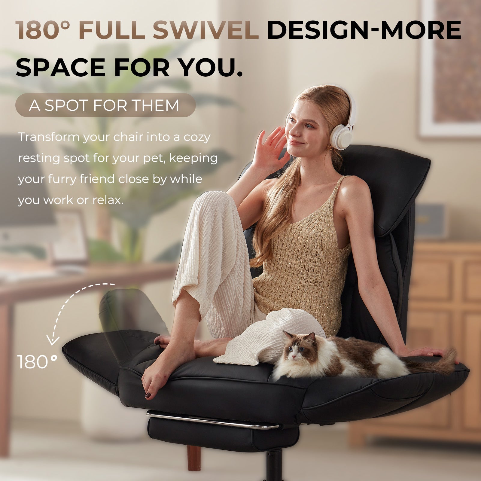 - 180° Pivoting & Lockable Armrests for Extra Space:Enjoy total control over your space. The armrests provide multiple adjustable and lockable positions, pivoting up to 180° to be stowed away or set perfectly for any task. This creates a versatile area for pets, cross-legged sitting, or simply moving freely.