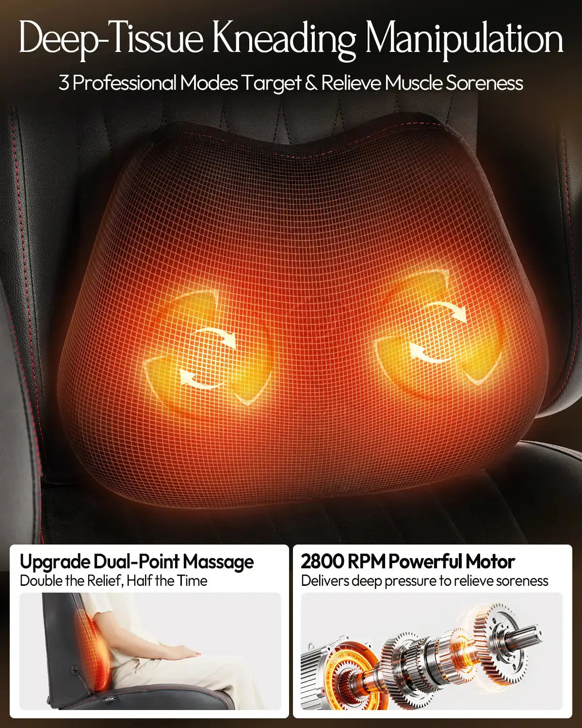 La función de calefacción en esta silla de oficina con masaje trabaja en sinergia con el masaje profundo 3D de amasamiento. El calor relaja los músculos tensos previamente, permitiendo que el masaje actúe más profundo y eficazmente. Esta avanzada silla gamer ofrece masaje de acupresión en sentido horario y antihorario para aliviar la fatiga y el dolor muscular, brindándote una experiencia terapéutica completa similar a un spa profesional. -