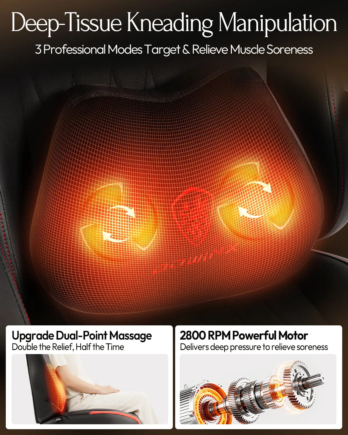 La silla gamer Dowinx está equipada con un motor de alta velocidad de 2800 RPM que ofrece una presión de masaje potente y profunda. El sistema de masaje 3D imita con precisión las técnicas humanas de pulgar y palma y ofrece 3 modos profesionales que se enfocan en el cuello, hombros, espalda y cintura. Esta silla gamer ergonómica también cuenta con soporte lumbar y de cuello ajustable y un respaldo con forma ergonómica que promueve una postura saludable al sentarse, ideal para sesiones largas. Como silla versátil para PC, combina relajación intensa con comodidad duradera. -