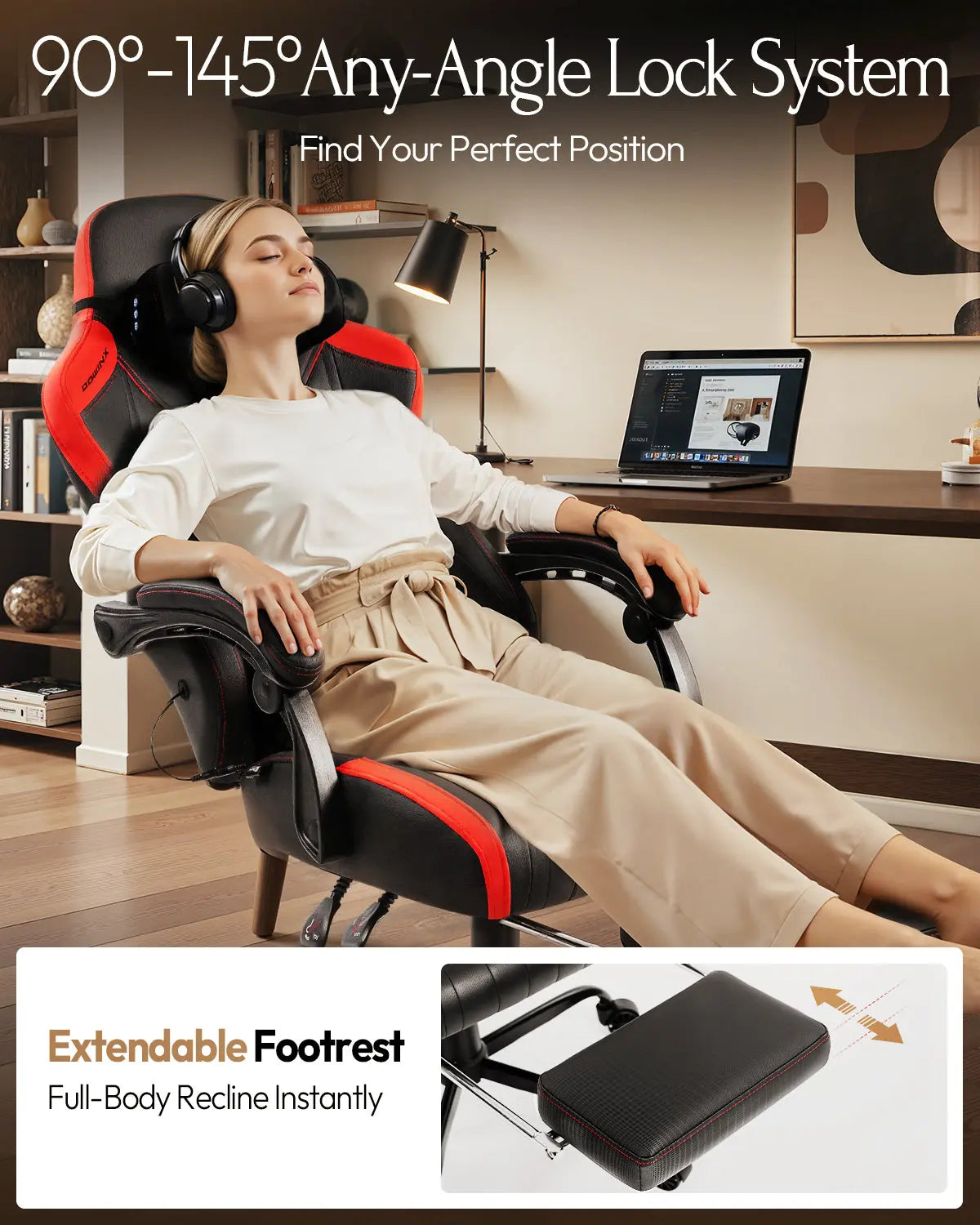 ¡Di adiós a los masajes tradicionales! Esta silla gamer con función de masaje cuenta con un sistema de calefacción premium ajustable en 3 niveles que envuelve tu zona lumbar en un calor constante y reconfortante. El calor penetra profundamente en los músculos, promueve eficazmente la circulación sanguínea y alivia rápidamente la rigidez y tensión en tu espalda. Esta silla gamer no solo proporciona el doble de calor, sino que también ofrece una experiencia relajante durante la temporada fría, ¡la manera perfecta de desconectar entre sesiones de juego! -