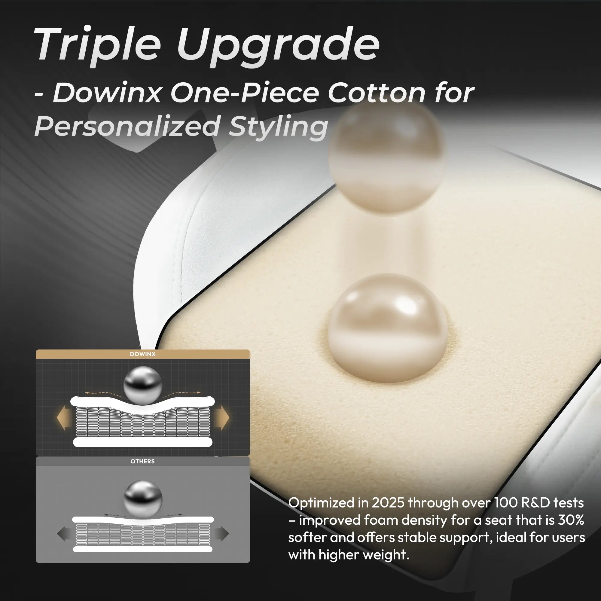 • Triple mejora en el cojín de espuma de una sola pieza con mayor densidad de espuma, la suavidad aumenta en un 30%
