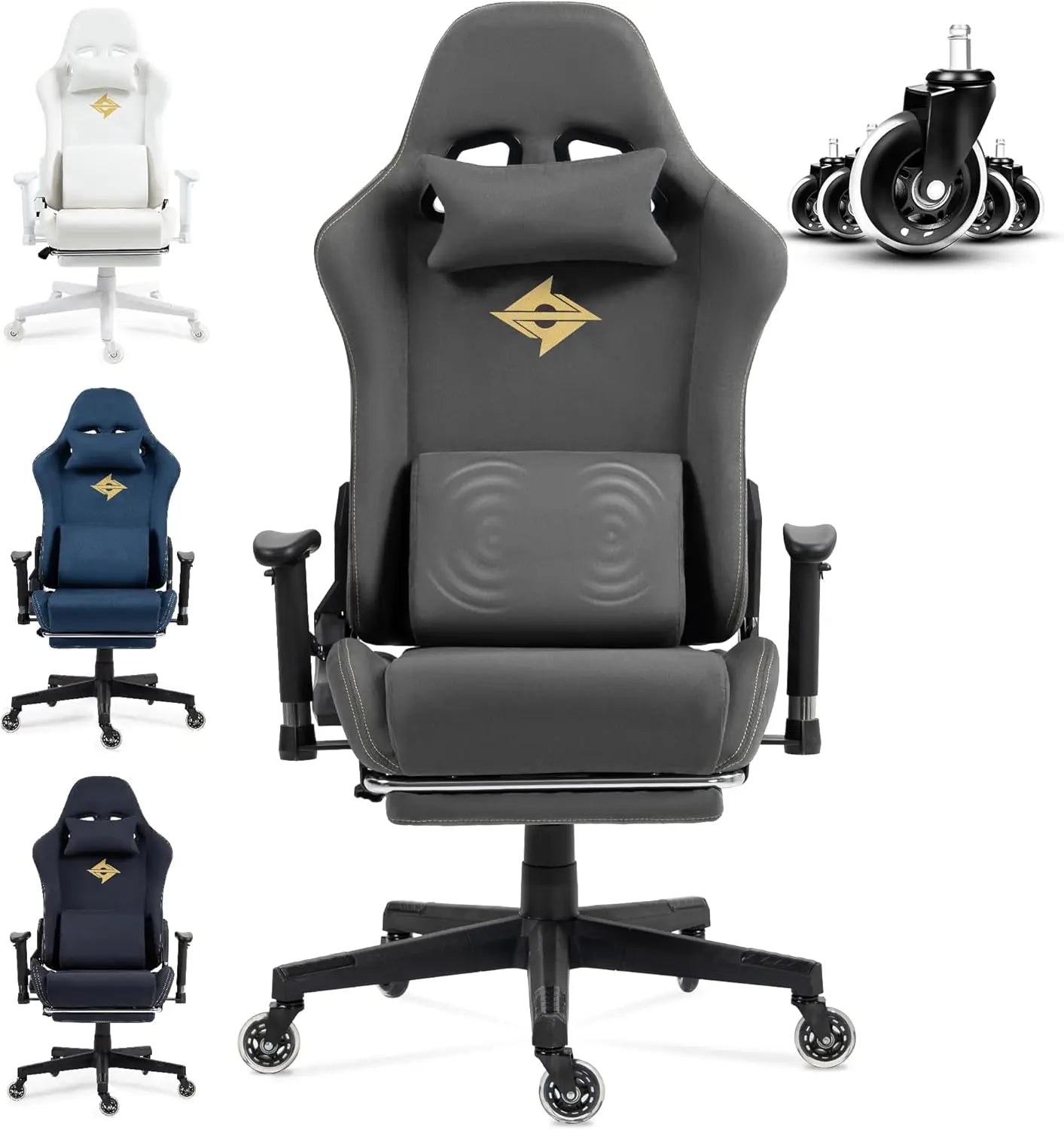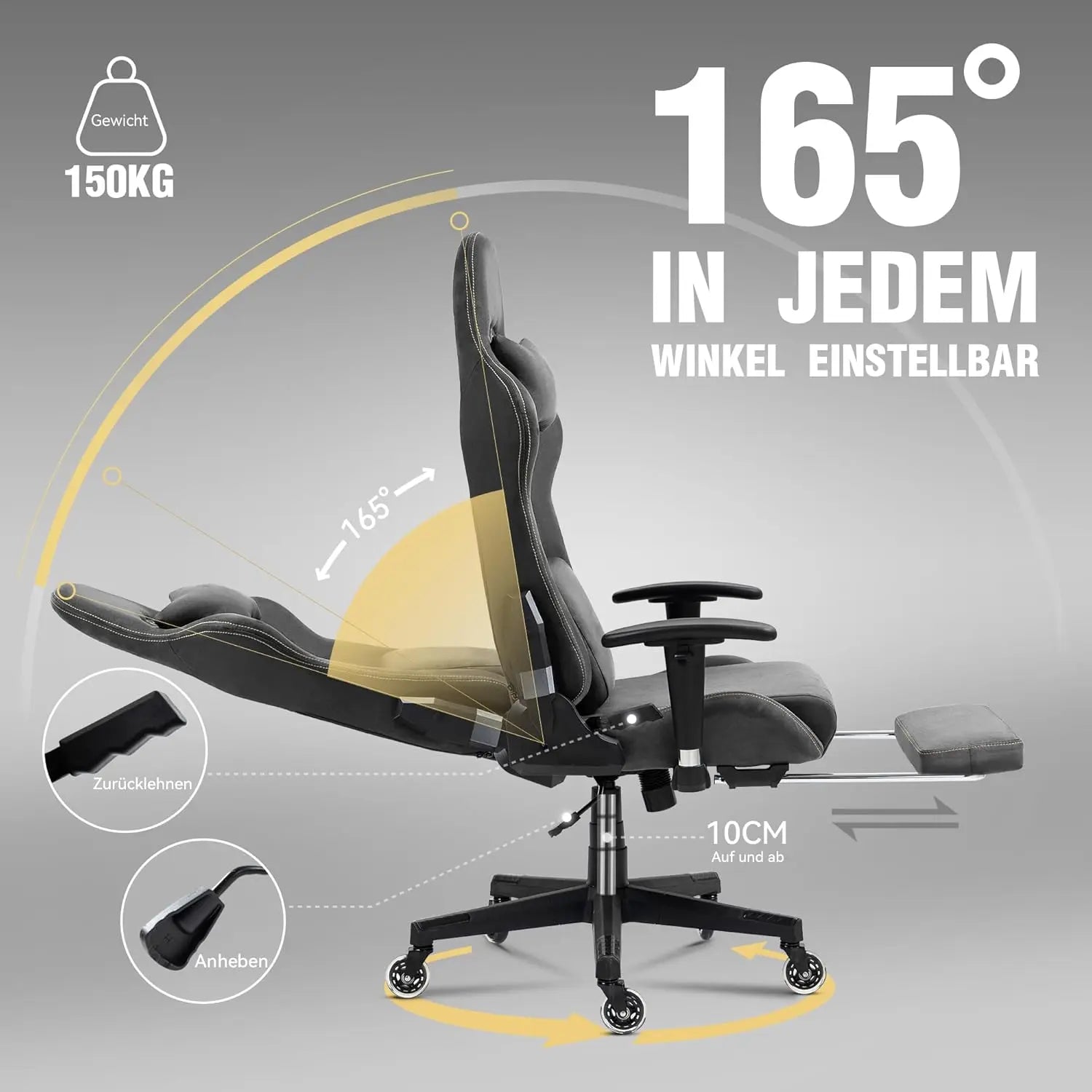 - LUXURY CAR SEATING EXPERIENCE: To create the ultimate gaming experience, we have carefully searched for this fabric that is extremely close to the interior of a luxury car. Different visual colours in different ambient light. Soft and durable with excellent touch feeling. Unlike leather chairs, the fabric has the advantage of being breathable and refreshing and minimises sweating in summer.