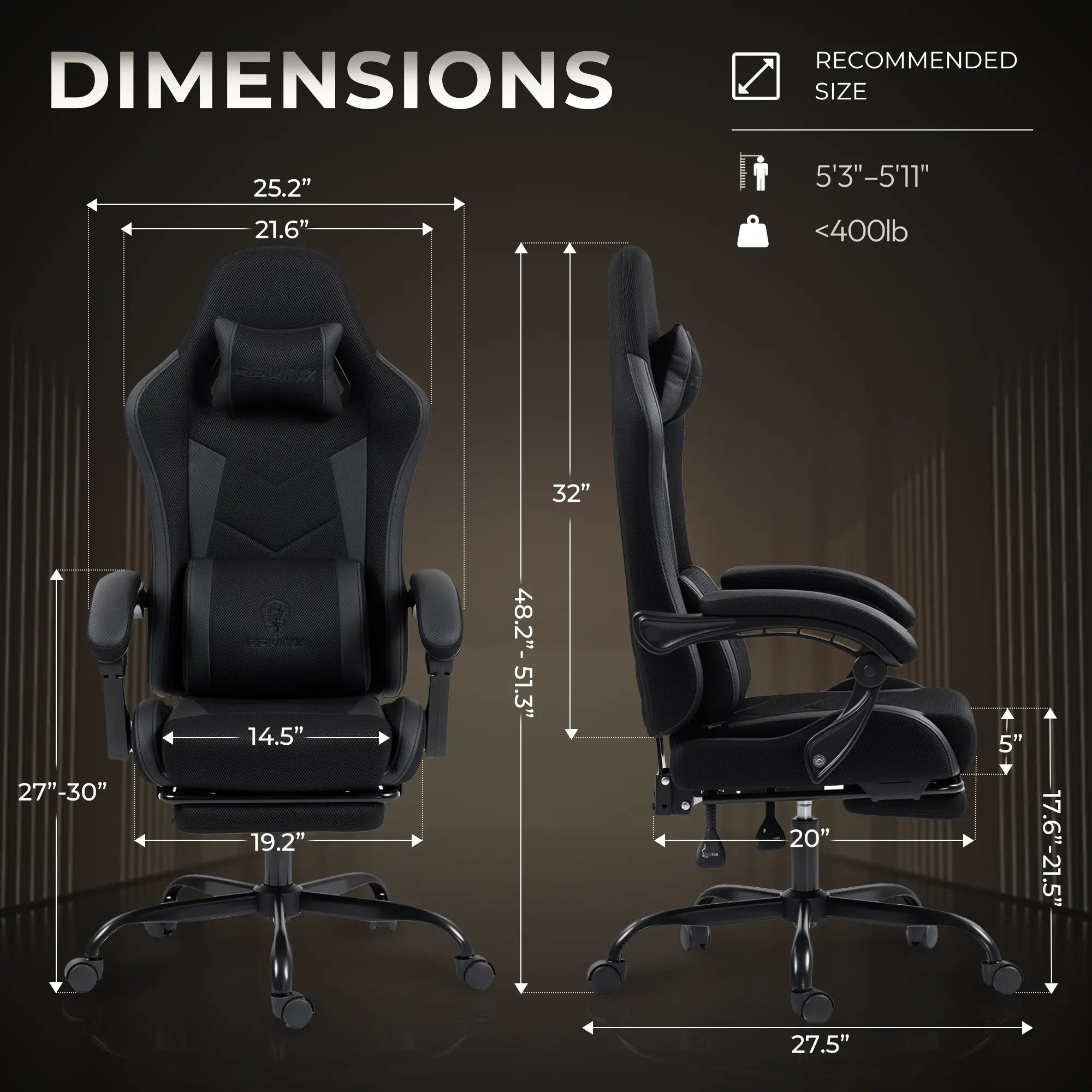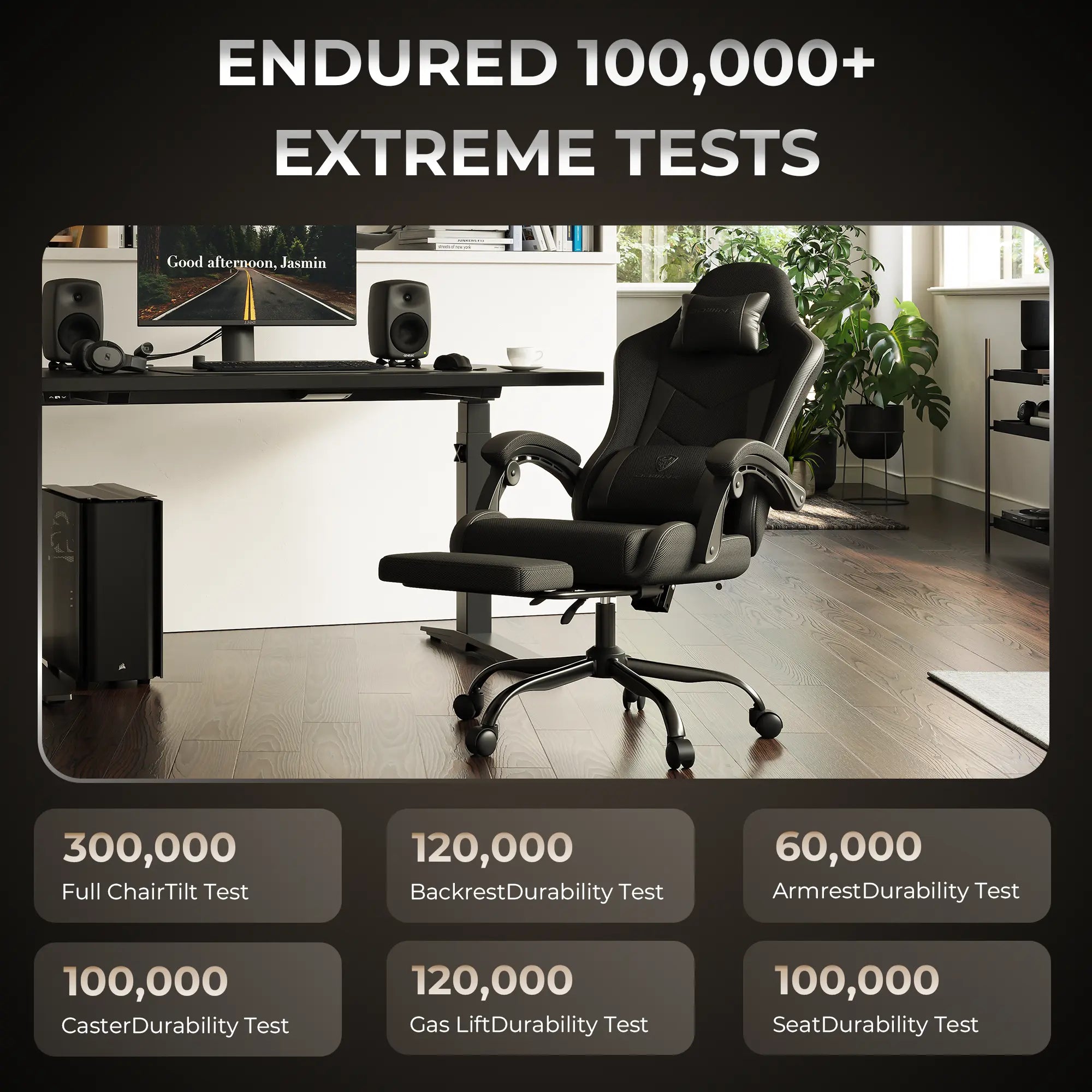 - No fatigue from sitting for long periods:Discover our game chair with footrest, designed for marathon sessions. The high-density foam cushion offers lasting comfort and stable support, while the retractable footrest lets you stretch your legs to improve blood circulation. Perfect for extended gaming or productive work, it’s a premium gaming chair that balances wellness and performance.