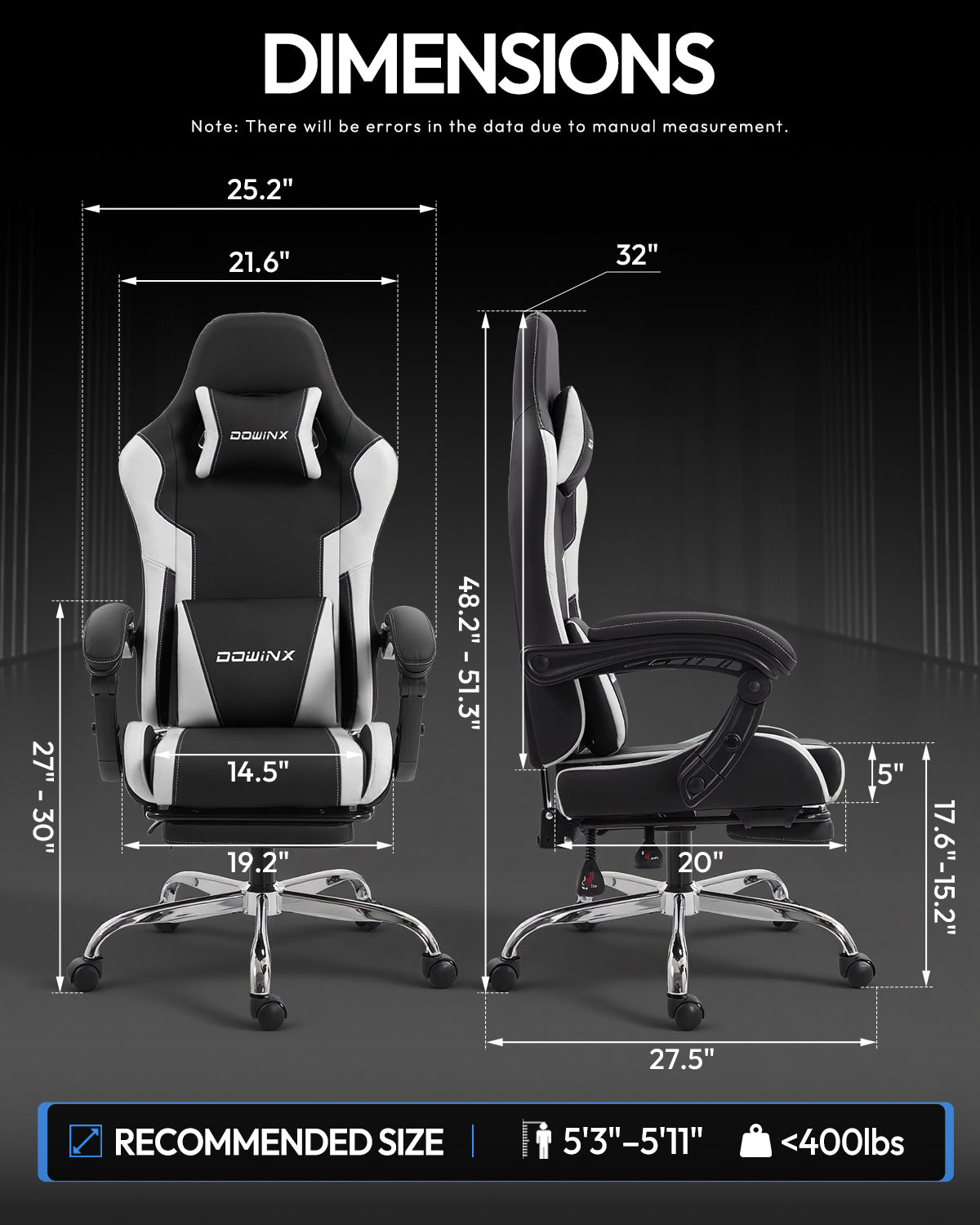 Dowinx Leather Gaming Chair LS-66D58J Black-white