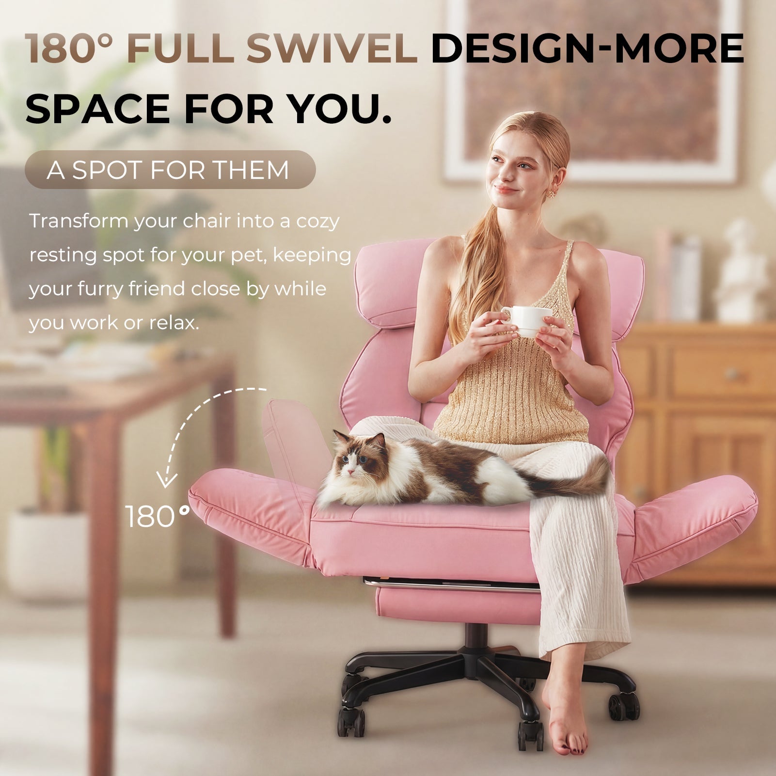 - 180° Pivoting & Lockable Armrests for Extra Space:Enjoy total control over your space. The armrests provide multiple adjustable and lockable positions, pivoting up to 180° to be stowed away or set perfectly for any task. This creates a versatile area for pets, cross-legged sitting, or simply moving freely.